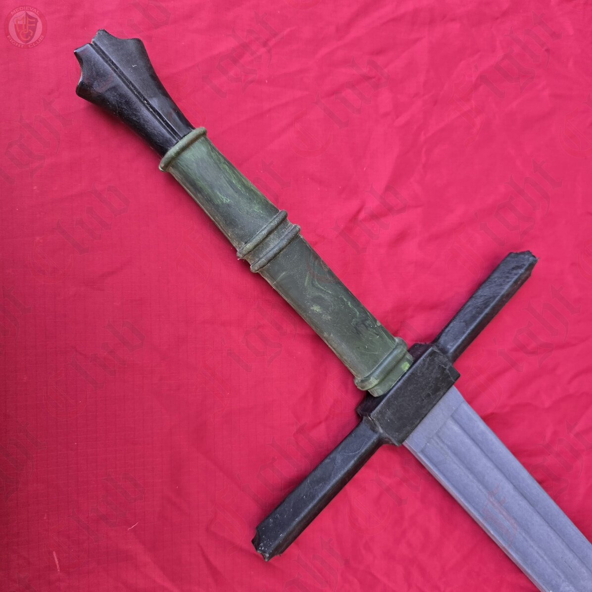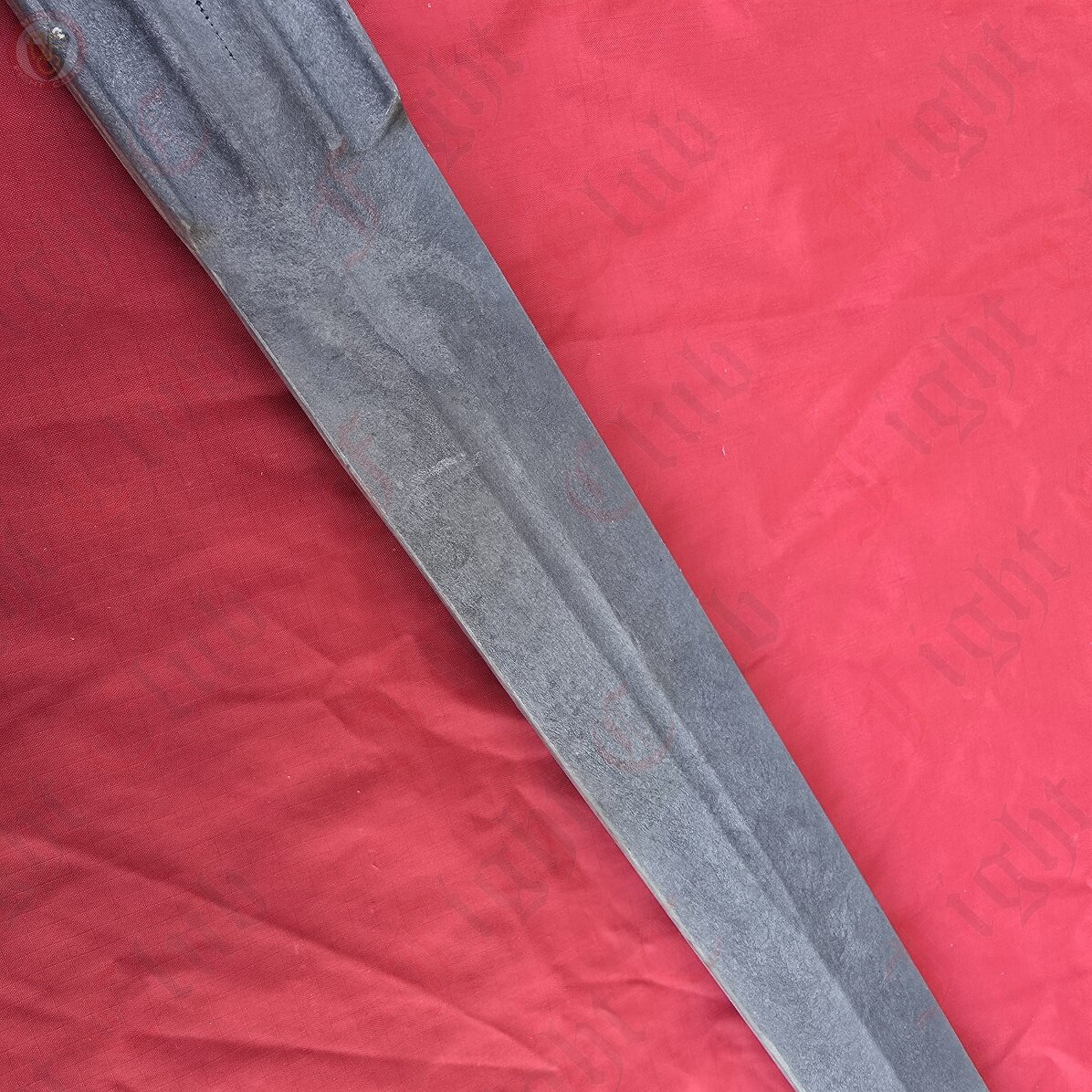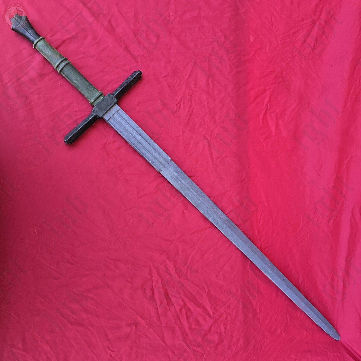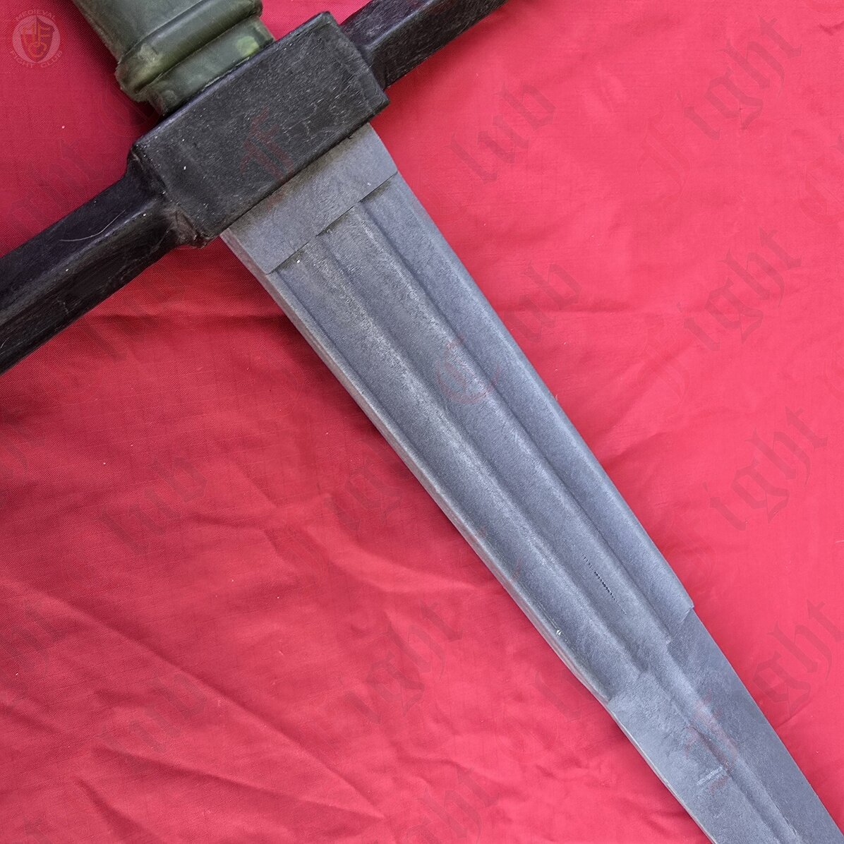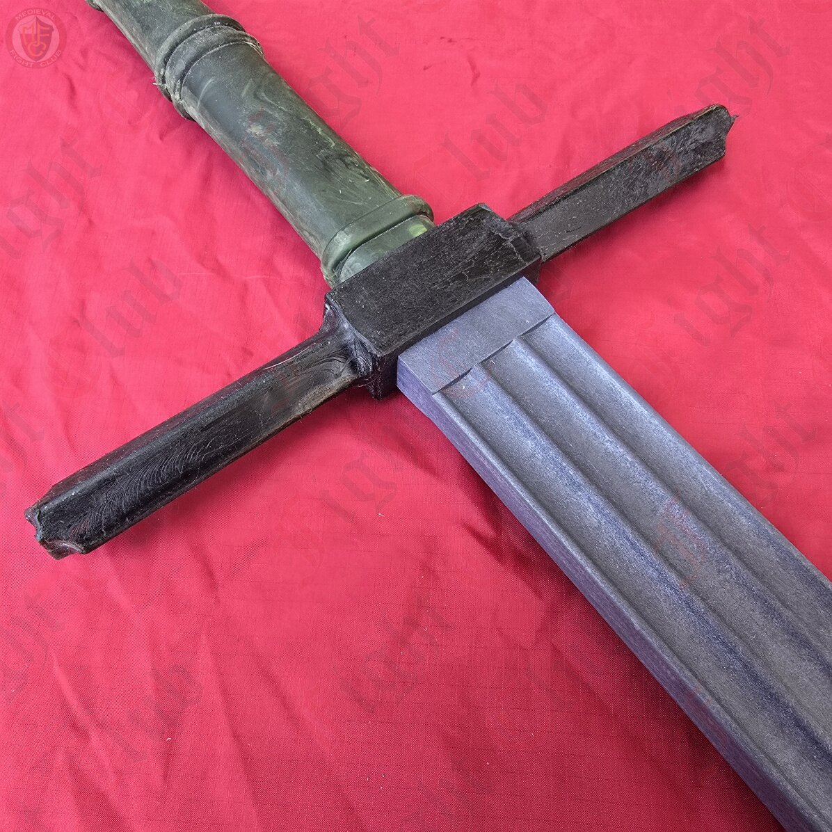 This waster also features a steel finish, in the sense that the nylon pigment is steel grey, making it look more realistic than other wasters. This design is an emulation of a bastard sword. It features a straight crossguard, a faceted pommel and straight double edged blade with fuller.