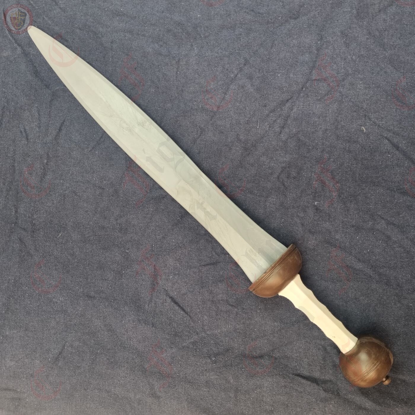 This design is an emulation of a Gladius, the classic weapon of legionaries and footsoldiers of the Roman Republic and Empire. This gladius is based upon the Mainz Gladius.