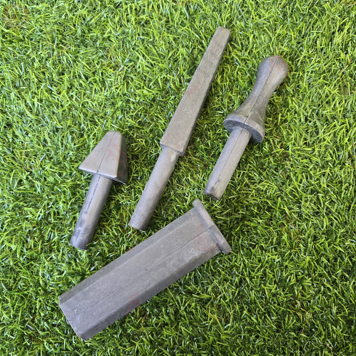 A set of polyurethane counterweights and buttspikes for your square shafted polearm.